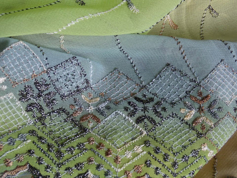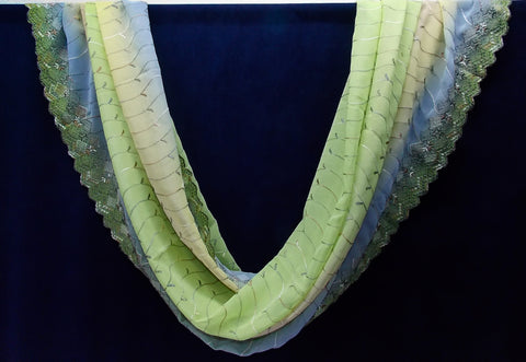 Long embroidered georgette scarf soft green slate blue 2.5 yards
